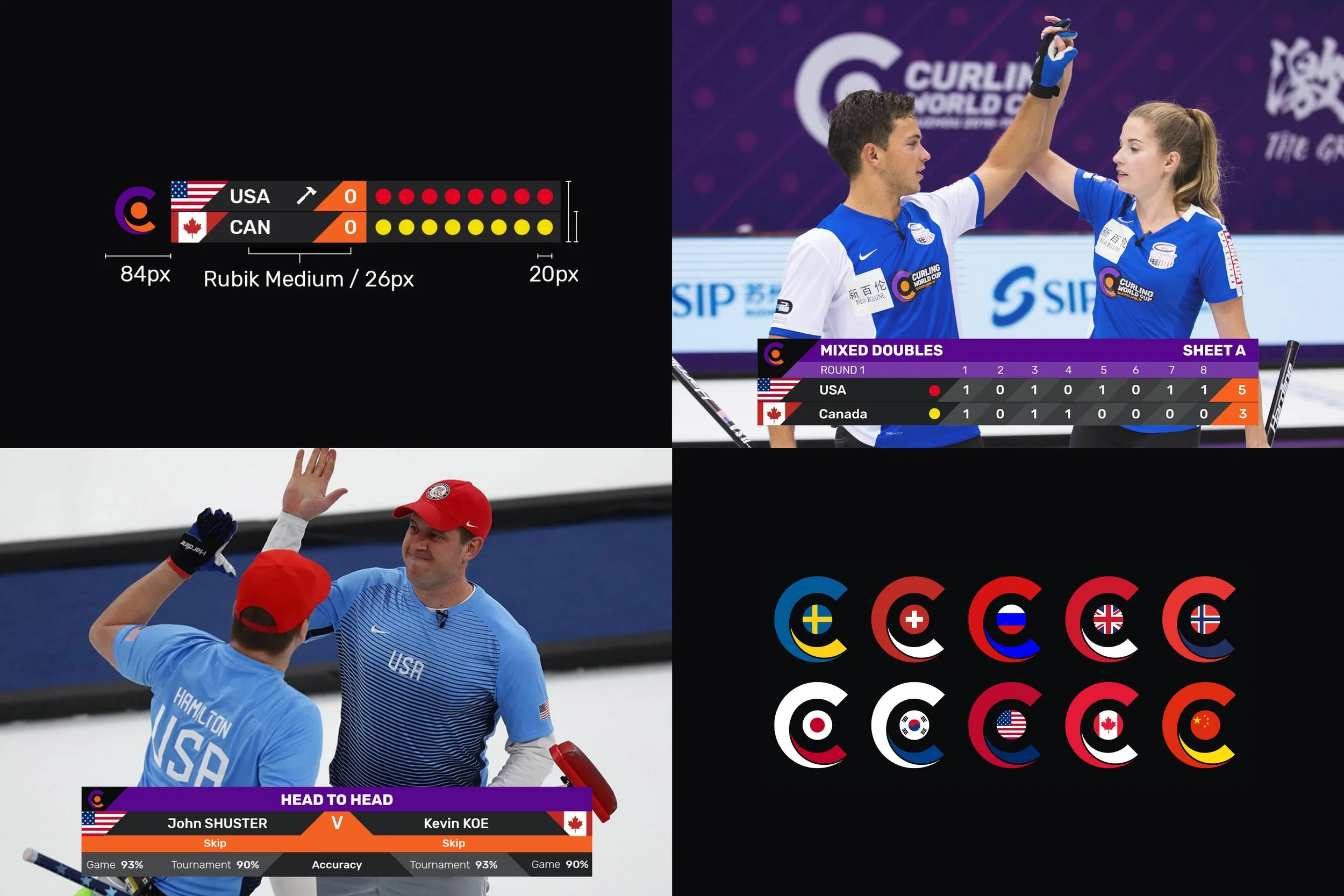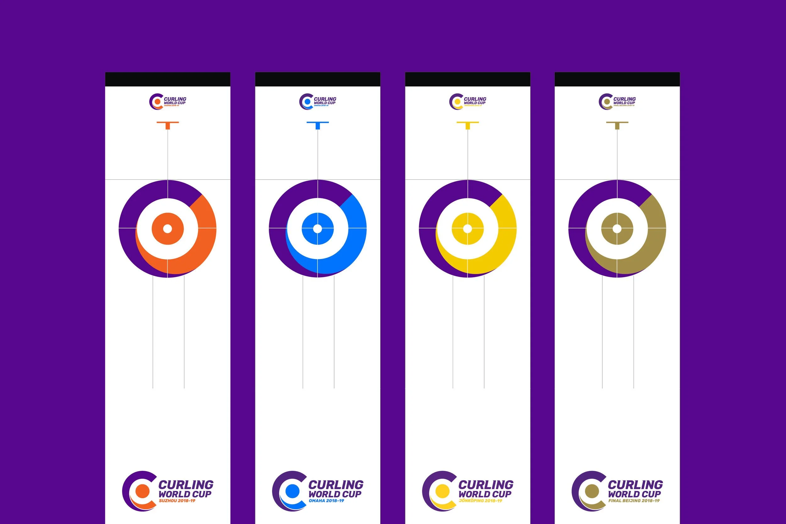 Breaking from trends in the space, the competition was given a bold and vibrant new colour palette, dynamic graphic language based on the motion of the sport, and a ‘C’ symbol that could act as the brand identifier, as well as the on ice marking of the ‘house’ - giving instant brand recognition during television coverage.